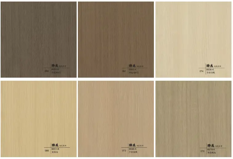 · Техническа поддръжка на доставчика: Декоративният филм за дървесни зърна за стената на шкафа има високи изисквания за производствени процеси. Доставчиците са длъжни да предоставят подробни технически параметри (като температура на нагряване, време за вакуум и т.н.) и поддръжка.